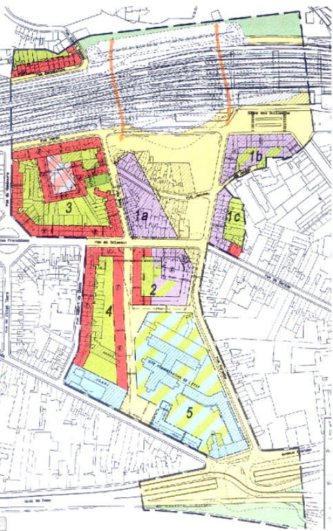 Le PCA est un outil urbanistique à valeur réglementaire (il a un caractère obligatoire pour tous selon l’art 49 du CWATUP). Celui des Guillemins a été développé par la ville de Liège à partir de 2000, sera approuvé par le conseil communal en 2001 et définitivement adopté par la Région Wallonne en 2002. Il est aujourd’hui sans effet, dans la mesure où le fonctionnaire délégué peut y déroger lors de l’octroi des permis, grâce à la surimpression d’un autre outil urbanistique le PRU (Périmètre de Remembrement Urbain).