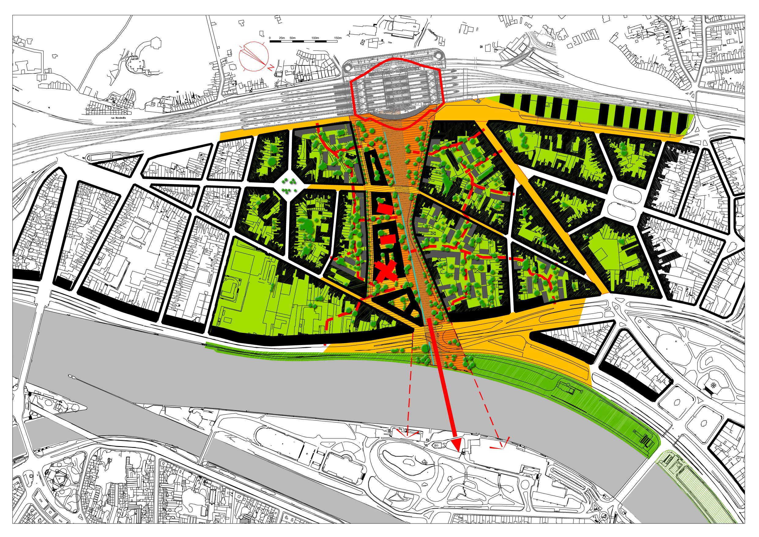 Ce projet fait la part belle aux circulations piétonnes et cyclistes, il met un terme aux expropriations de logements (ce qui reste de la rue Paradis est préservé), il tisse des liens avec le quartier et propose un urbanisme à échelle humaine, soucieux d’un équilibre entre les différentes fonctions du quartier et notamment la fonction d’habitat.