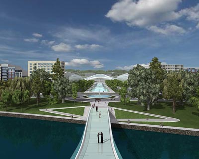 Court-circuitant le travail en cours à la ville de Liège (et faisant en cela suite à diverses initiatives ayant eu lieu depuis le début de la décennie), Euro-Liège TGV, son directeur Vincent Bourlard, et l’architecte Calatrava présentent, en février 2006, un projet mégalomane qui prévoit de raser une bonne partie du quartier pour créer un canal (ou plus exactement une succession de plans d’eau) entre la gare et le fleuve.