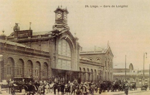 |3| Aujourd’hui disparue, cette gare monumentale en cul-de-sac était alors la plus belle et la plus grande de la ville. Elle était la propriété de la compagnie du Nord-Belge, et le point d’aboutissement de « sa » ligne vers Flémalle-Haute - Namur et Givet par Seraing ou Tilleur